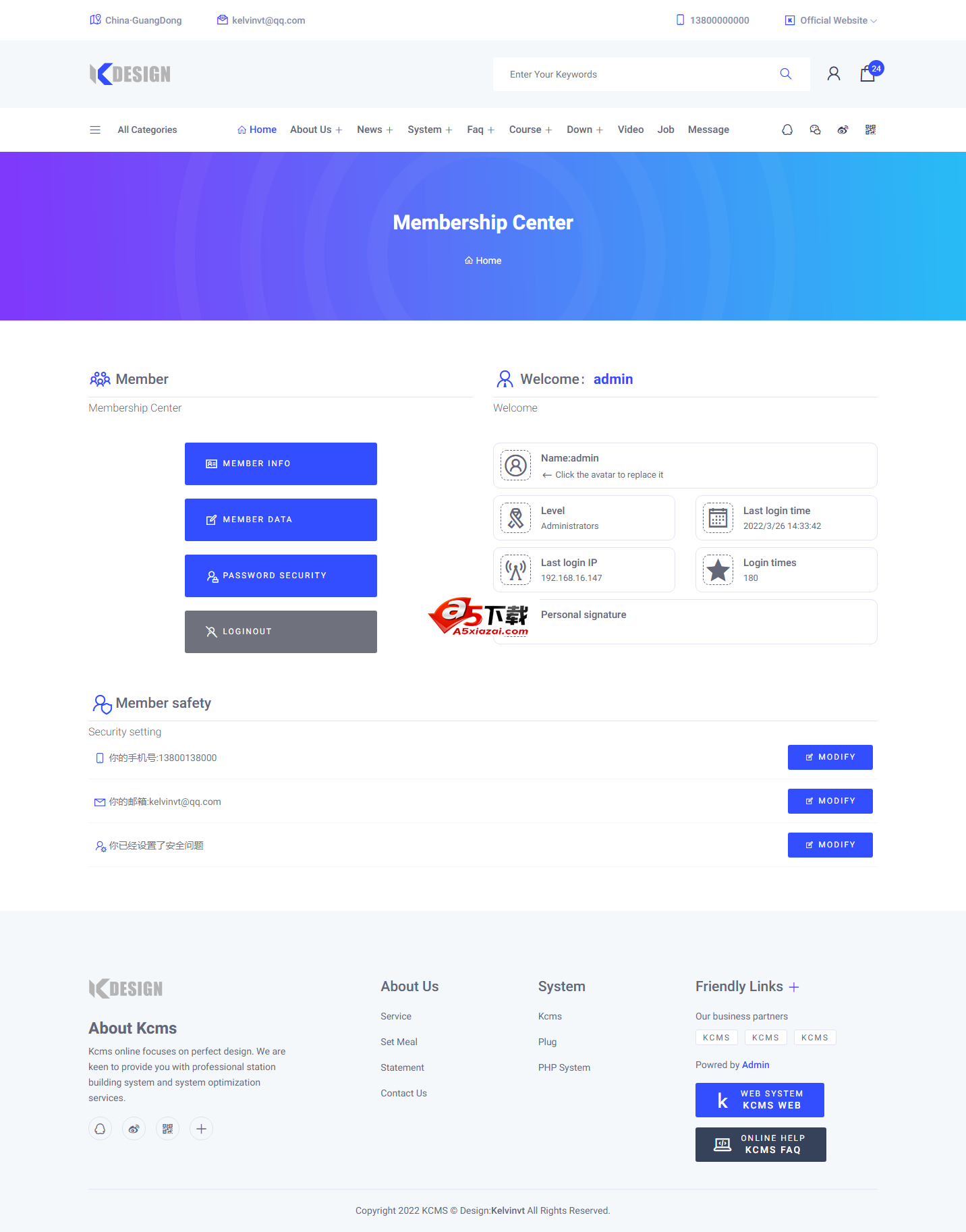 3.支持会员系统,找回密码,会员头像等。