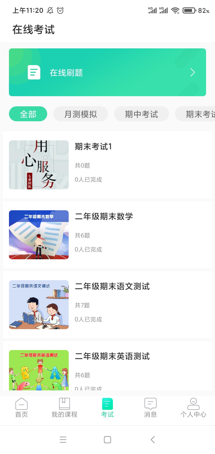 学员可在用户中心参加考试,支持多种题型,题目可从题库中导入。