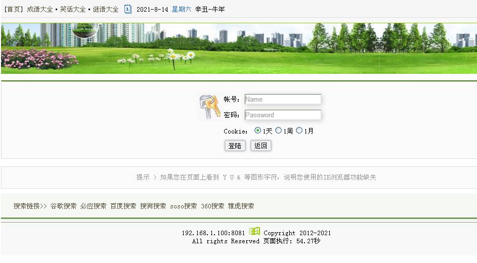 管理帐号 admin 密码 admin