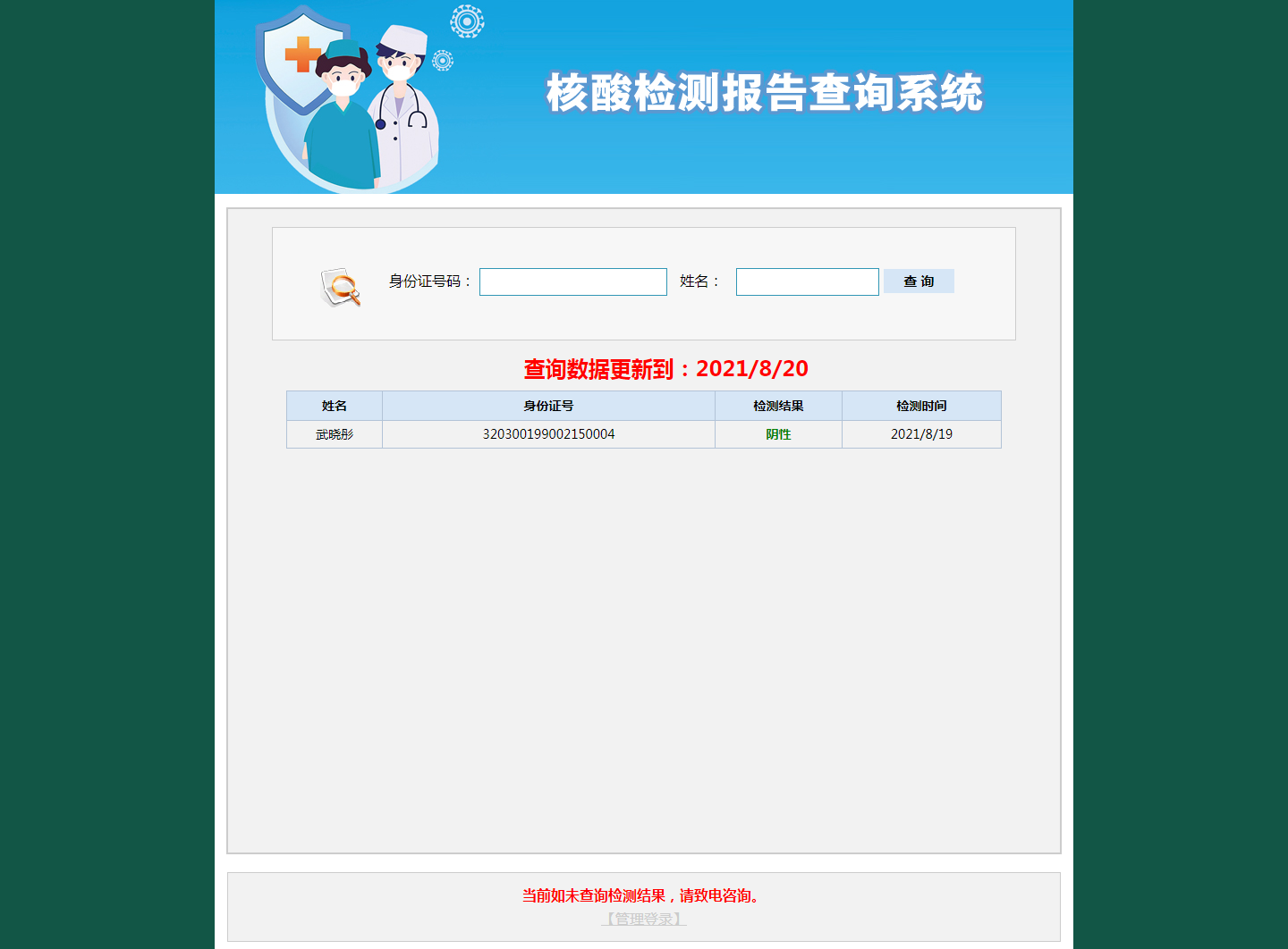 3.前台用户根据身份证号和姓名查询检测报告结果。