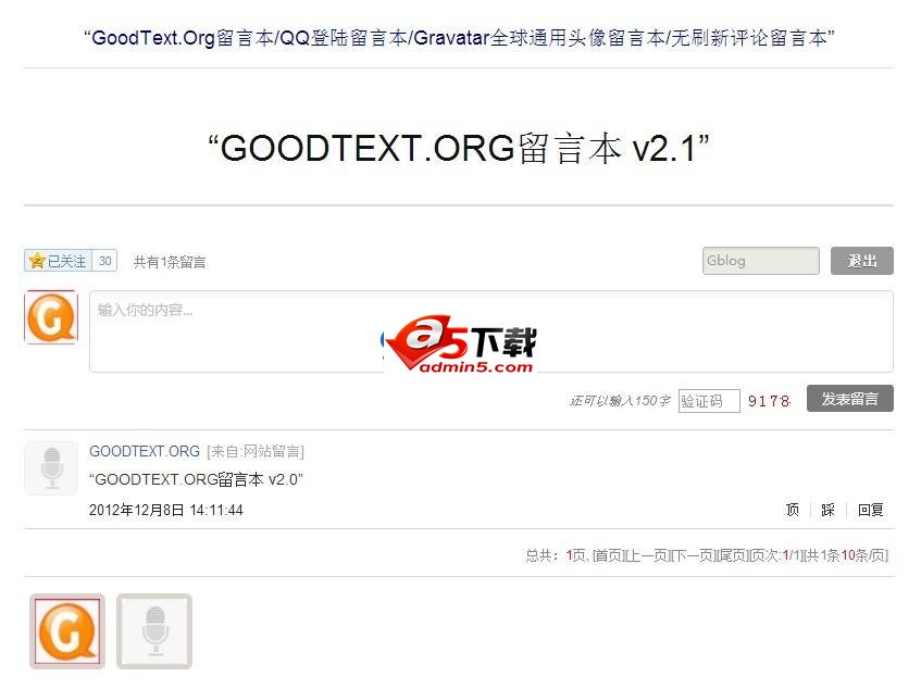 GOODTEXT.ORG之前推出过使用【QQ登录】方式留言的asp.net版留言本,不过有些朋友反映自己没有支持asp.net网络环境,所以这次降低要求制作了asp版的,主要是改造了以前制作的GOODTEXT.ORG留言本 v1.4版,虽然结构有些变化了,但还保留了1.4版的一些功能特点。