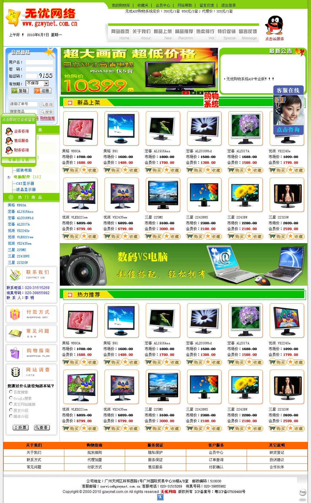 无忧购物系统ASP专业版V2012.4.4详细功能: