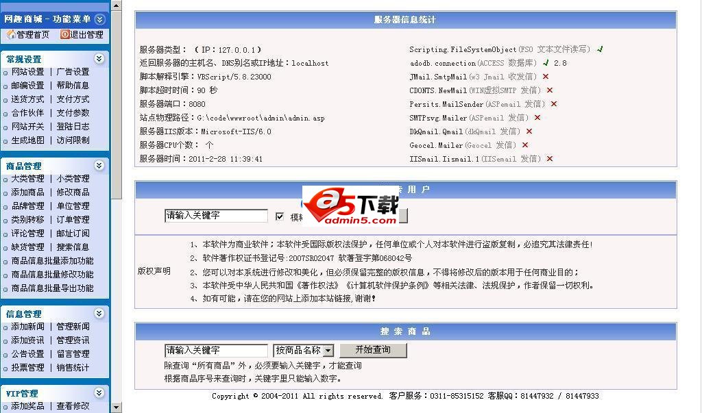 网趣静态版支持多种在线支付接口,管理者可以根据需要选择使用。新版系统还支持水印图片和水印文字设置功能,以及商品靠前显示功能,完美支持三级分类设置以及论坛整合等常见功能,系统拥有多套不同色调的模板可方便切换,众多智能开关项方便控制,支持数据库在线备份、恢复及下载。支持管理员任意权限划分机制。还拥有常见的商品复制、上下架管理、高级搜索以及用户等级划分等实用功能。