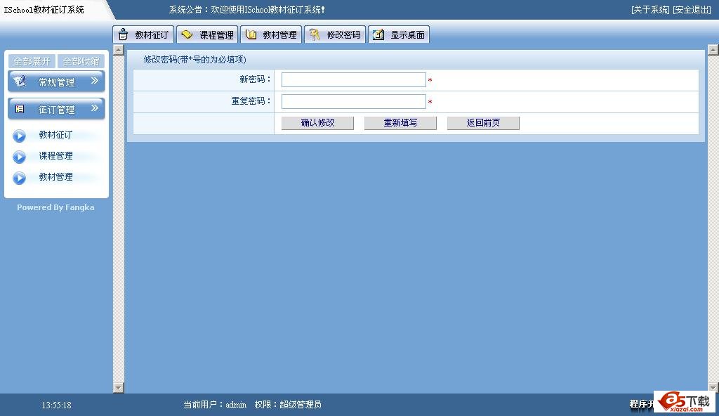 ISchool教材征订系统是由方卡在线独立开发的一套学校在线教材征订解决方案,适用于各类学校的教材征订工作,通过本系统,教师可以方便的录入教材征订信息,征订工作完成后可以导出征订列表。