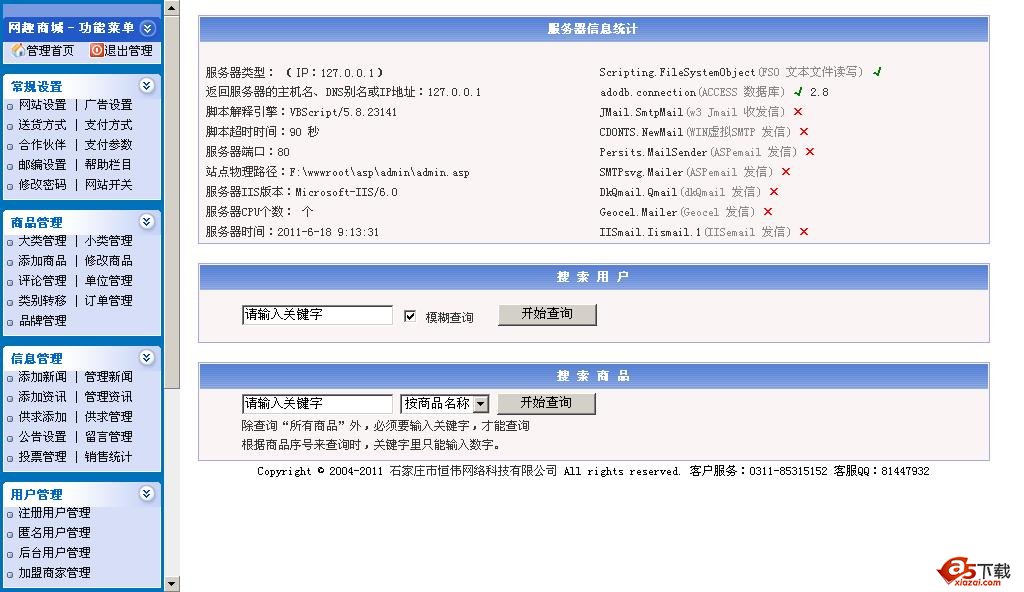 支持强大的订单邮件通知,网站有了新订单系统自动发送邮件给管理员!人性化的商品在线排序可以方便购物者选购商品,强大的报价中心栏目可边浏览边放入购物车;商品排序功能可更把直观的按相应顺序对商品排序浏览,支持商品浏览历史查询功能,同时拥有商品在线横向对比评测!让用户选购商品变得轻松自然。具有强大的商品搜索、价格区间搜索,热门商品搜索显示等,新版系统新增图片在线操作,支持图片预览并支持删除操作非常方便。
