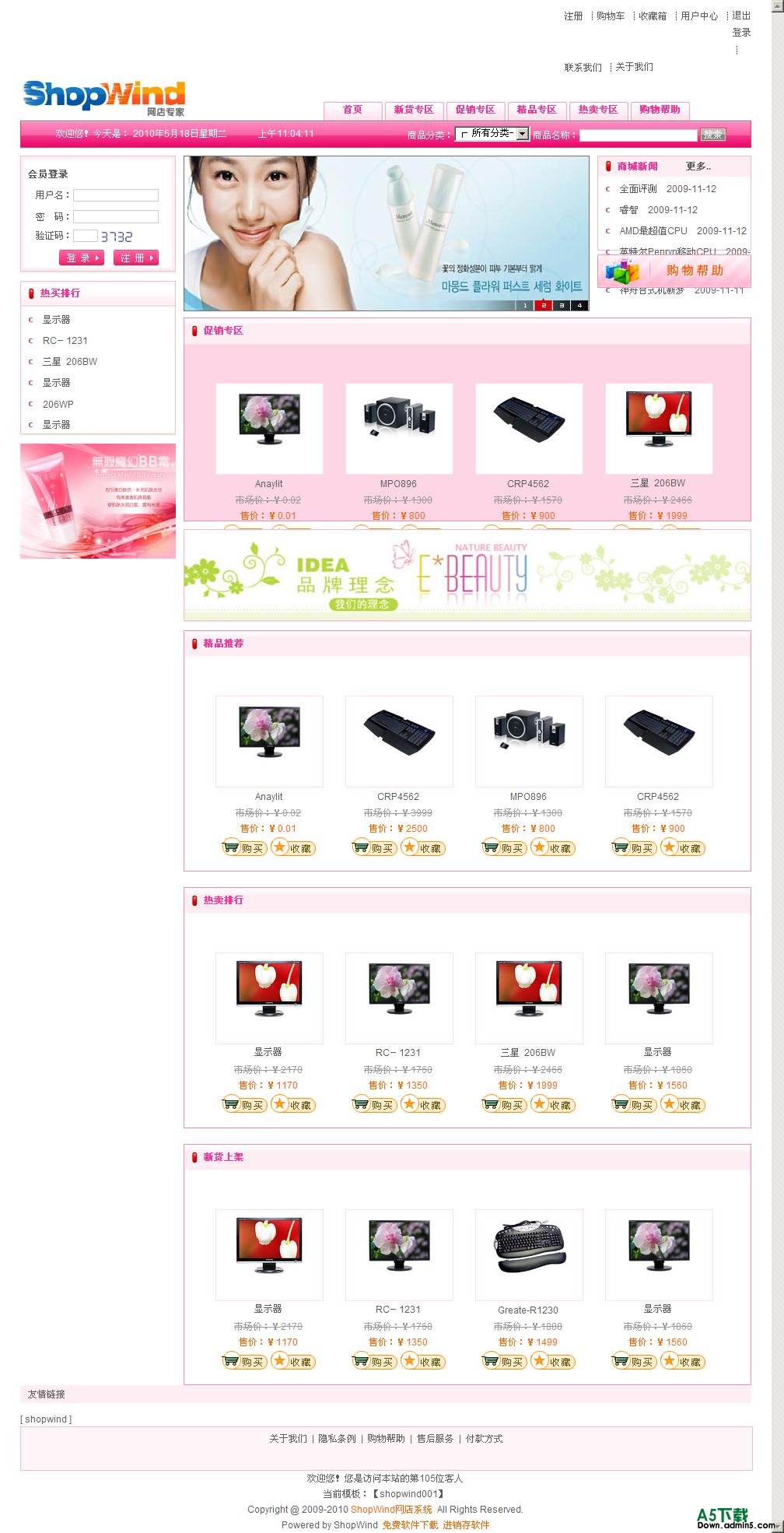 ShopWind网店系统是国内最专业的网店程序之一,采用ASP语言设计开发,速度快、性能好、安全性高。ShopWind网店购物系统提供性化的后台管理界面,标准的网上商店管理模式和强大的网店软件后台管理功能。