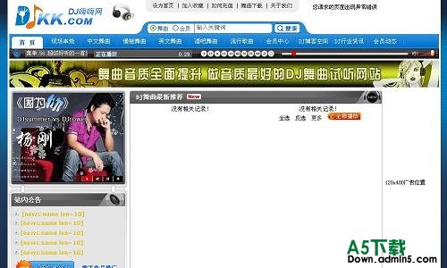 4.后台模板可以自由切换,支持多个模板。后台默认三个网站模板,一个音乐网站模板,两个DJ网站模板。功能绝对强大!有问题请联系毒药QQ:313196566.
