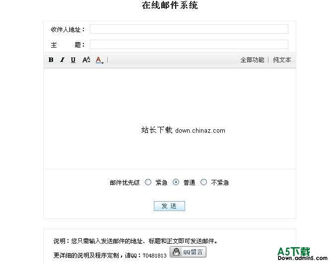 您只需输入发送邮件的地址、标题和正文即可发送邮件。 您也可以通过程序简单的修改,生成对企业单独的邮件提交订单!