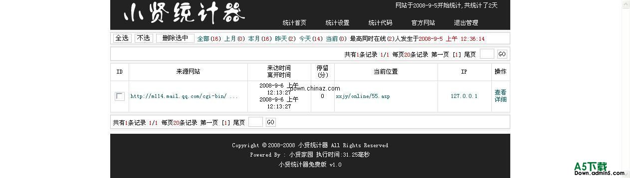 3、 IP记录(让您对您网站的访问来源地区更清楚,带IP查寻链接)