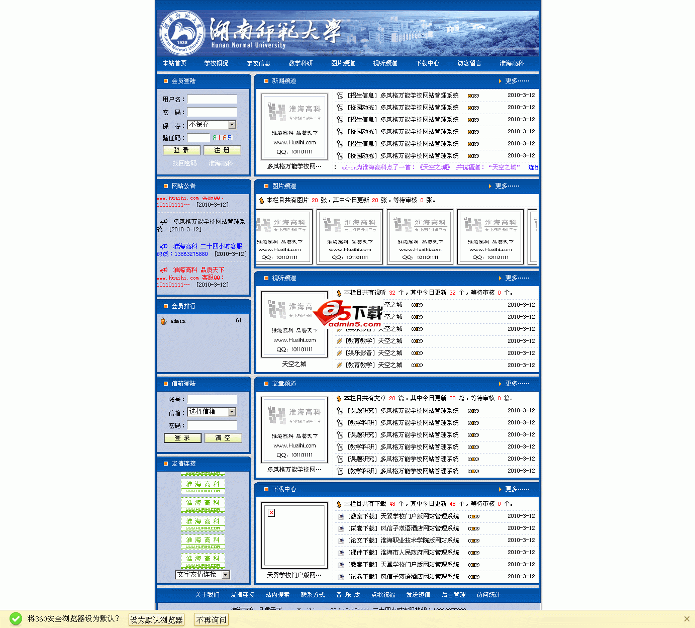 信息时代,学校迫切需要一款功能适用,安全可靠的学校网站管理系统,淮海多风格万能学校网站管理系统是不错的选择,学校网站已经不仅仅是作为学校可有可无的摆设。逐渐面向成熟化,实用化发展,在互联网高速发展的今天,网络能做到的事情越来越多,这种24小时不间断的宣传方式备受各领域青睐,网络招生也无疑成为最便捷的招生方式,但是传统的建站方案过于复杂,成本相对较高,现在有了自助建站系统,您只需要会打字即可马上拥有一套自己的学校宣传、招生网站,多风格万能学校网站管理系统就是这么一套完善的网站管理系统,它是基于ASP开发的一套学校网站管理系统,采用ACCESS数据库,使用简单快捷容易上手,仅需基础建站知识便可熟练操作。非常适合作为职业学校网站的招生或学校网络宣传网站,整站代码开源,无任何使用次数限制,无域名绑定限制。后台功能完善,风格大气,追求细节的完美性,优化了内核代码,升级了程序风格美工细节。经过历届版本的开发完善,现程序已几近完美。后台各项功能完整可用,无任何已知安全隐患。网站集成了网上报名功能,为学校招生提供优质、高效、便捷服务。更多人性化的细节功能等待着您的发现。相信多风格万能学校网站管理系统会给你带来高品质的使用体验!