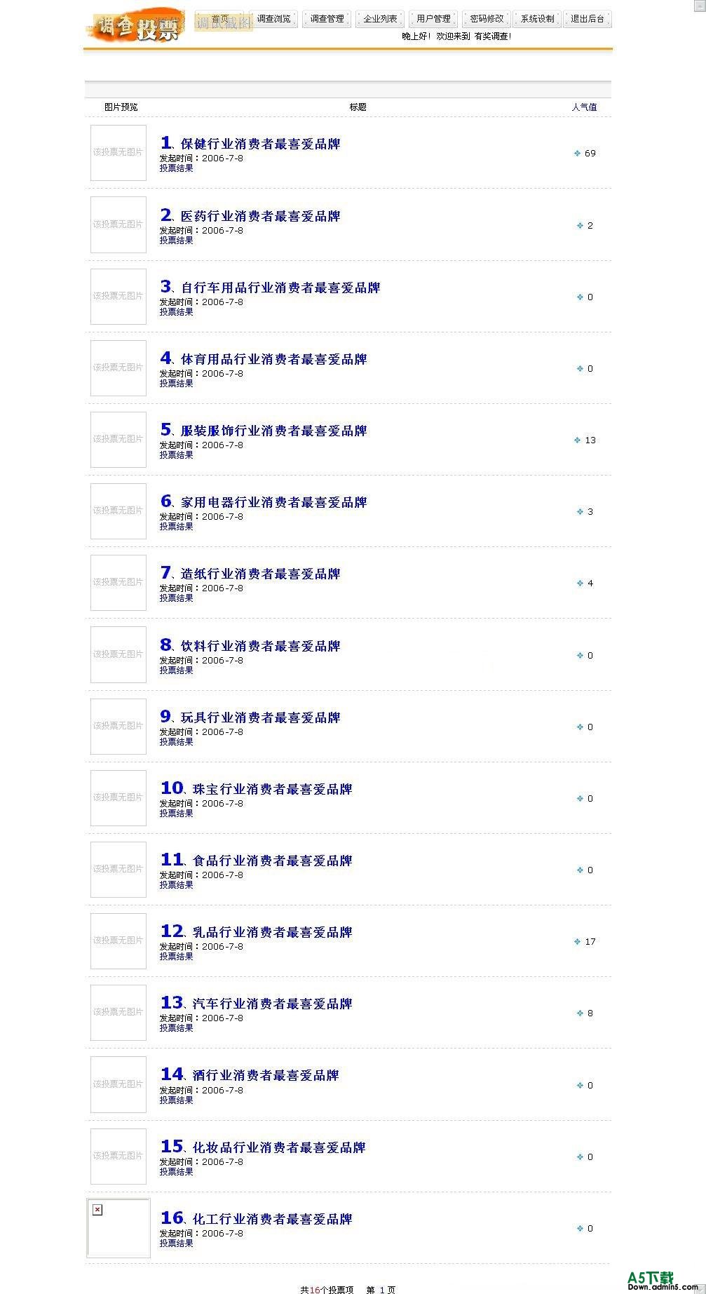 对投票主题操作(添加,修改 删除 上传图片 ) 支持单选OR复选,分页显示效果