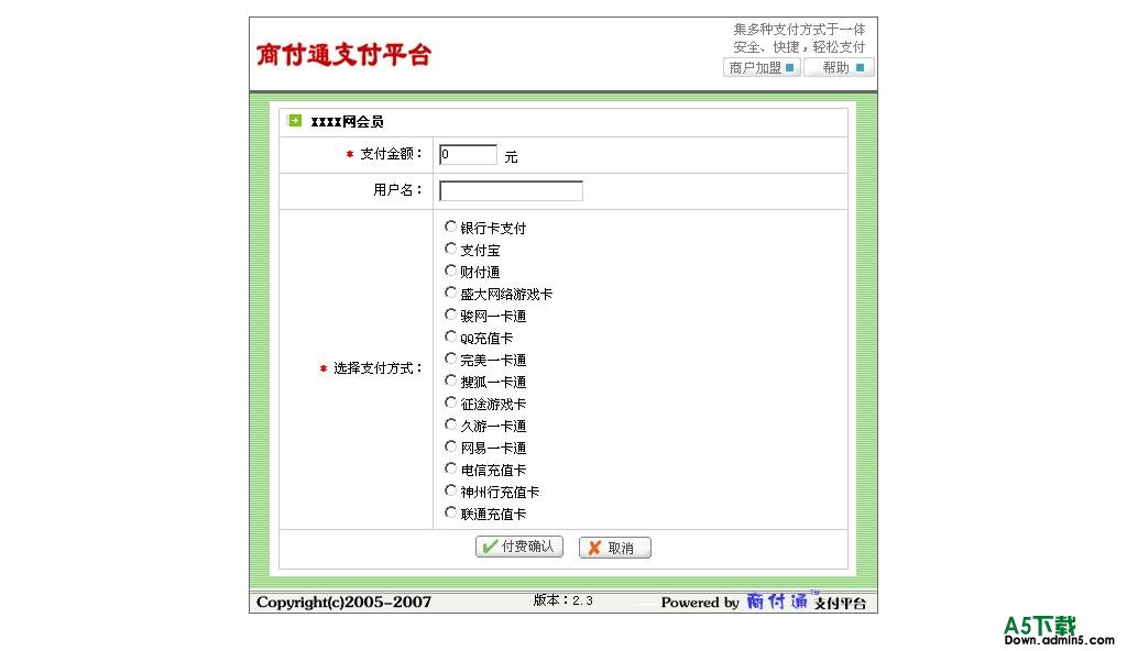 电信充值卡 支付宝 财付通 银行卡 在线支付
