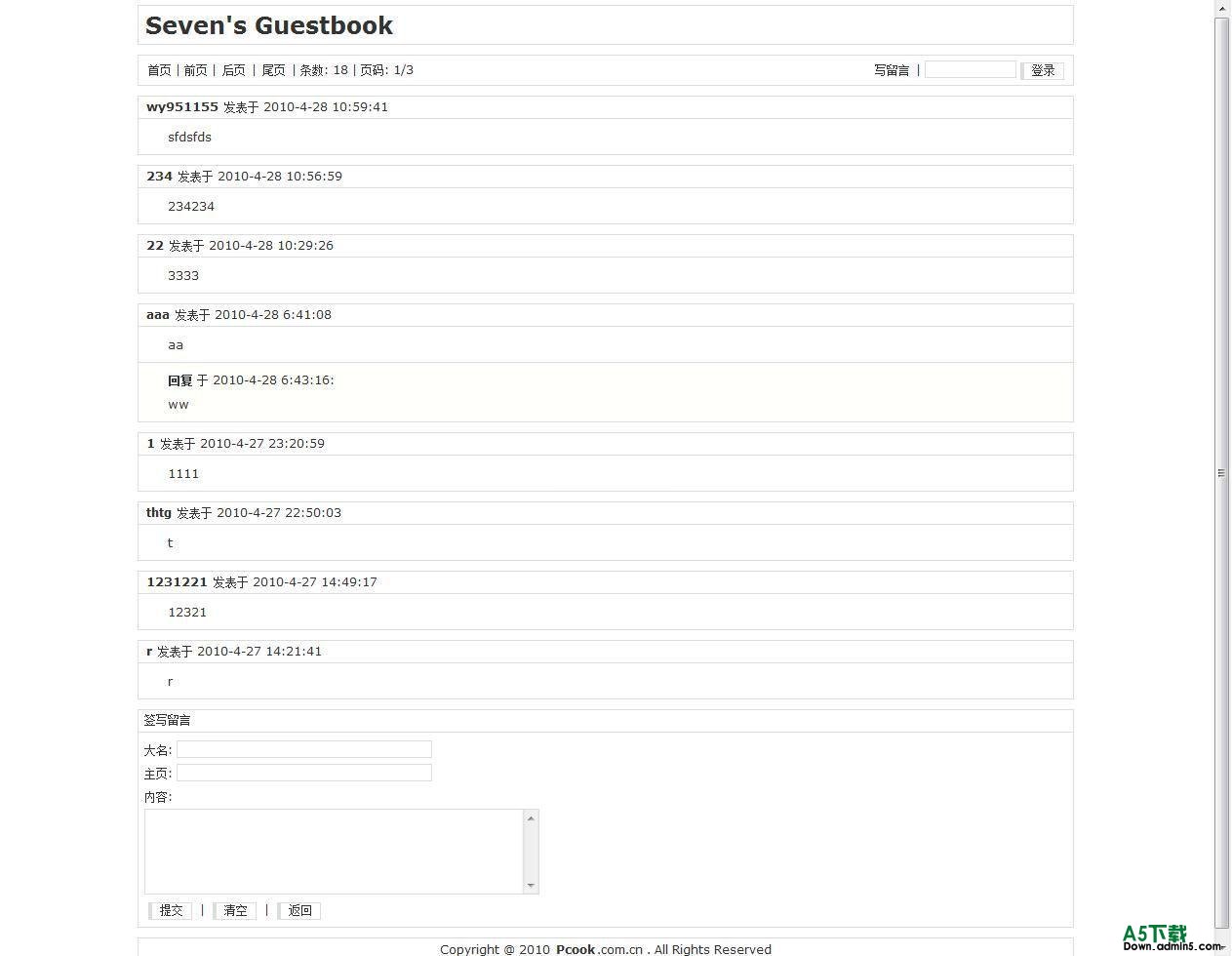 2)保持文件的相对位置,将解压后得到的文件上传到你的服务器上,留言簿基本上就可以使用了。