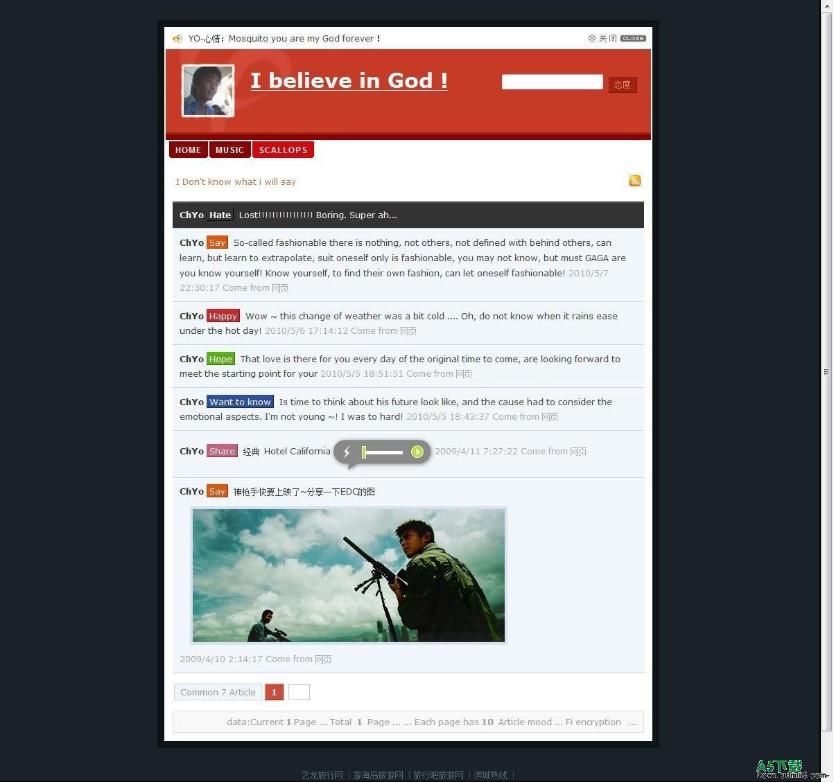 很久以前整理的一个超级简单的程序,配用了音乐 心情 友情连接 广告 等。。可以通过首页登陆后管理各个界面 管理用户名密码基本都为admin!有什么问题可以联系我:103404690