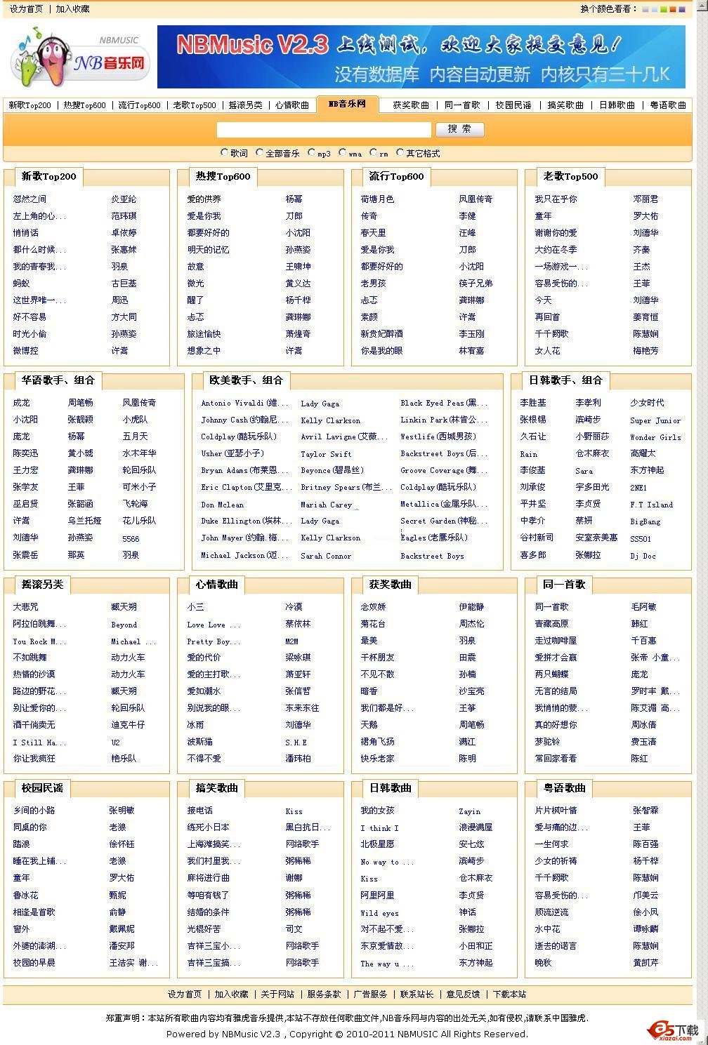NB音乐网所有数据与雅虎音乐同步更新,无需日常维护管理。