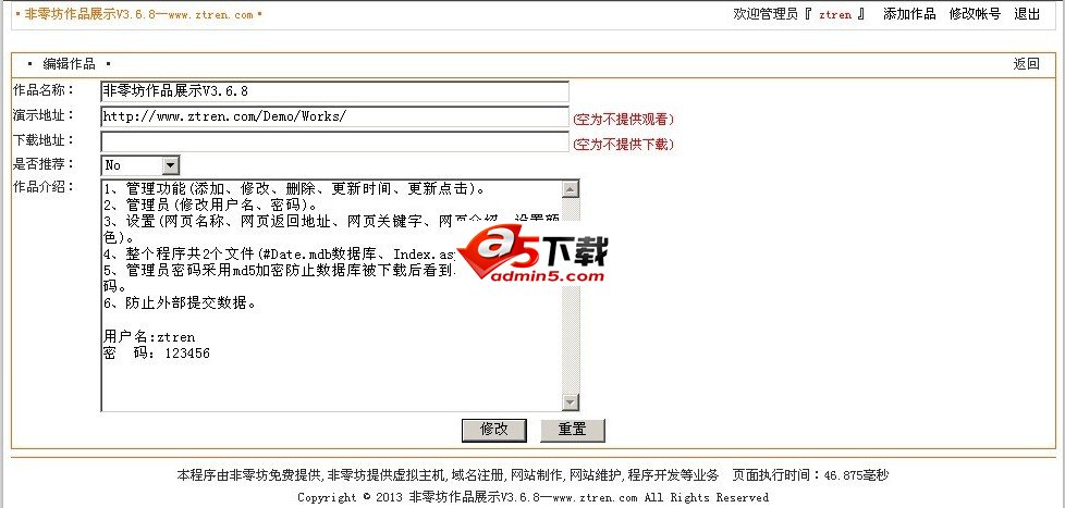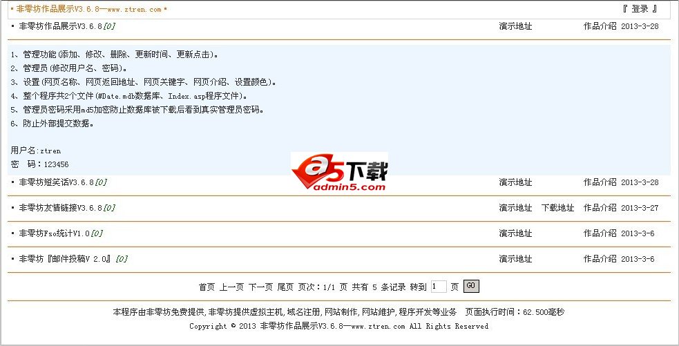 1、管理功能(添加、修改、删除、更新时间、更新点击)。