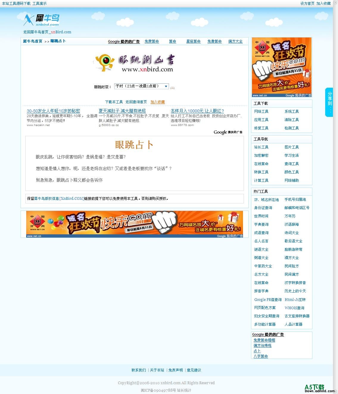 欢迎使用犀牛鸟眼跳占卜查询工具!本工具运行环境需求:asp。