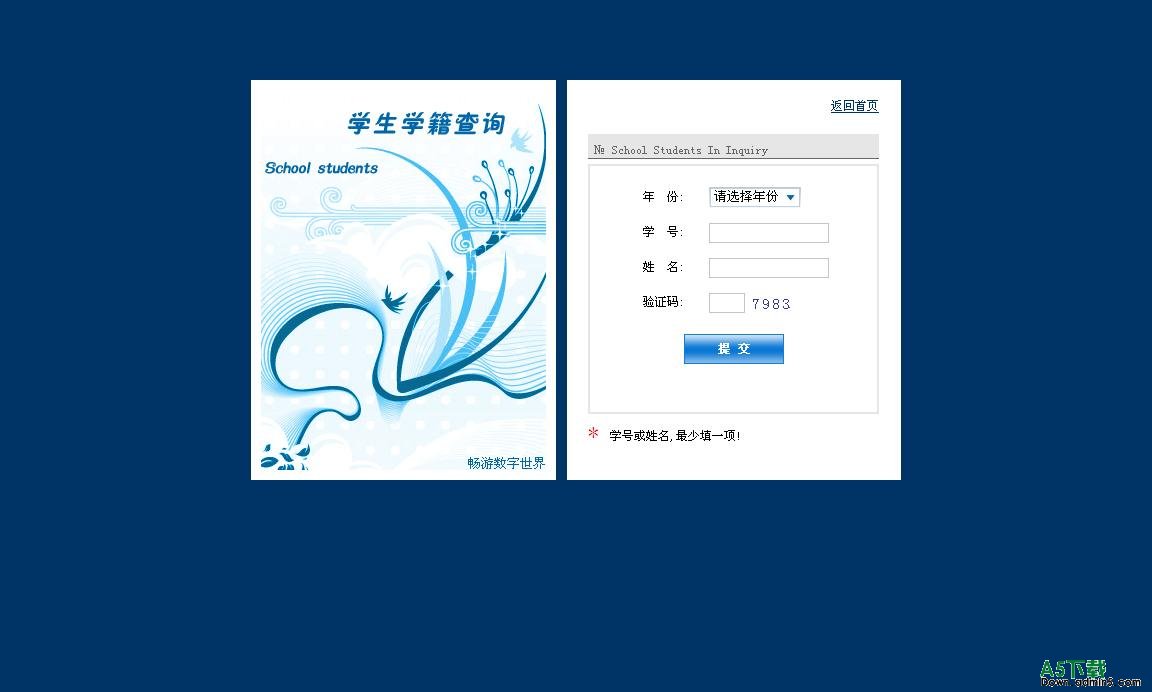 分为学籍管理模块,新生管理模块,班主任管理模块(成绩管理,考勤管理),分查询,打印等功能 超级管理用户admin 密码123 进入后可查看班主任用户 演示用户123 密码123