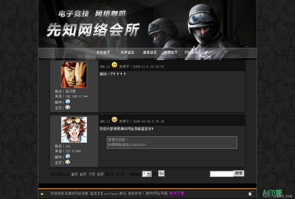 4、本留言本提供自动分页功能和关键字过滤功能,均可以在管理界面进行设置。