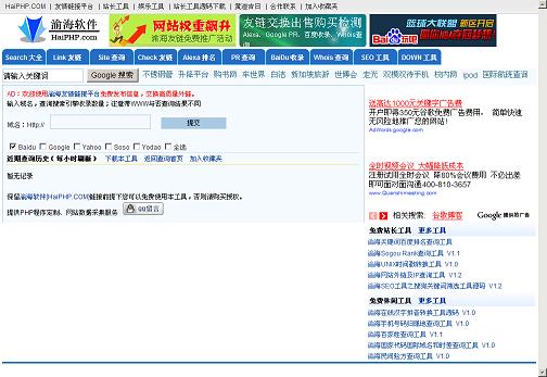 欢迎使用渝海网站收录查询工具,本工具运行环境需求:PHP; Yahoo和Yodao检索需要iconv函数支持,若您PHP环境不支持iconv函数,可修改显示模板取消对应选择框。