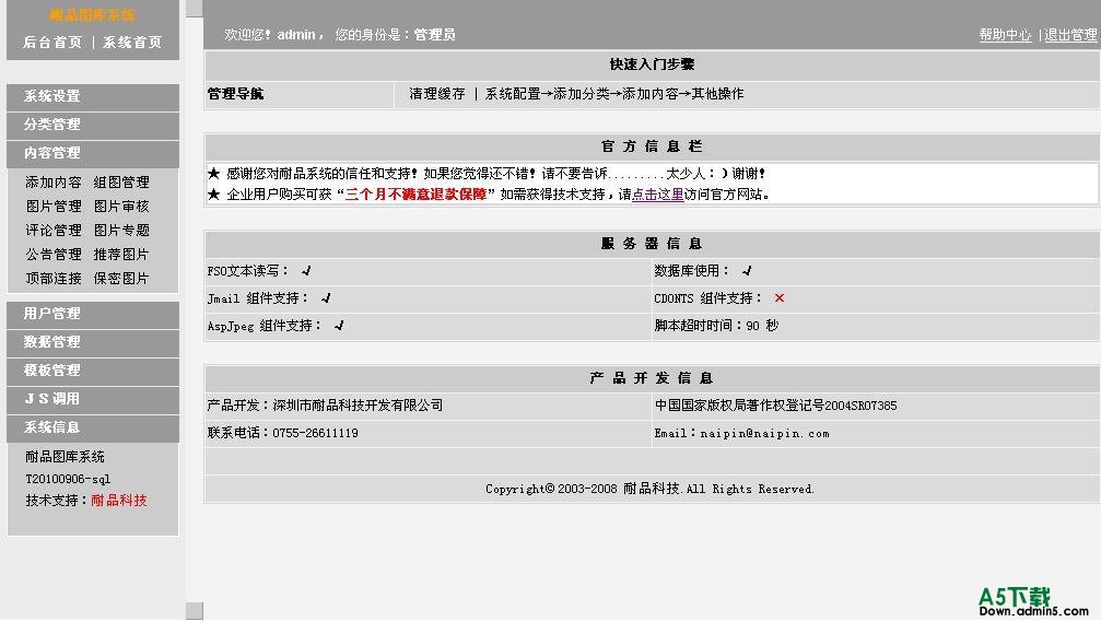 4、强大的JS调用功能:可以让有一定代码知识的朋友很方便的任意自定义网站界面;