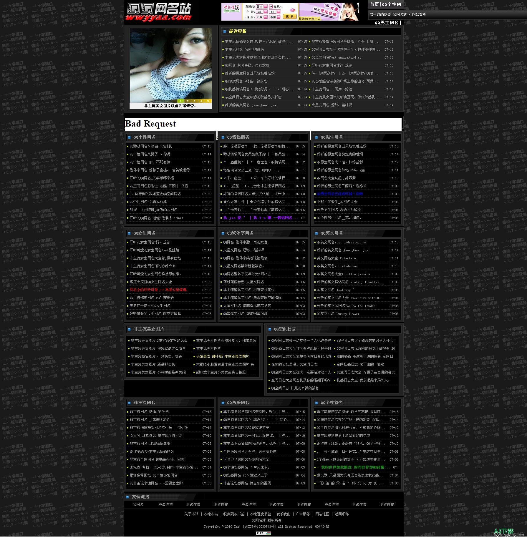 QQ网名站整站源码 后台管理地址http://你的域名/admin/ 后台管理用户名和密码admin 验证 wwyyaa