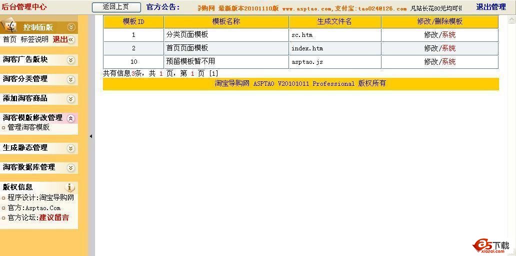 淘宝导购网 淘宝客推广ASPTAO v20110215版更新详细说明: