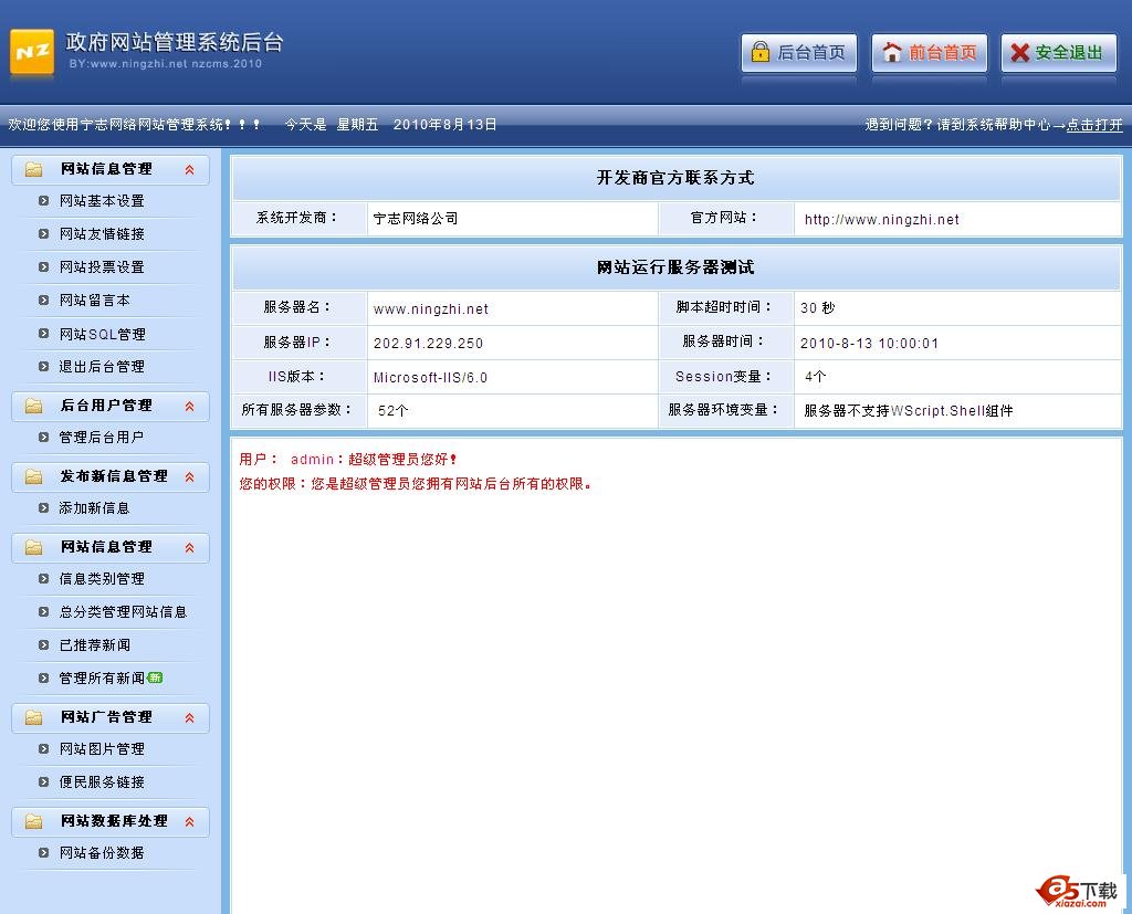 6、集成新闻内容分二级分类管理,增强了系统更实用性,管理性强。