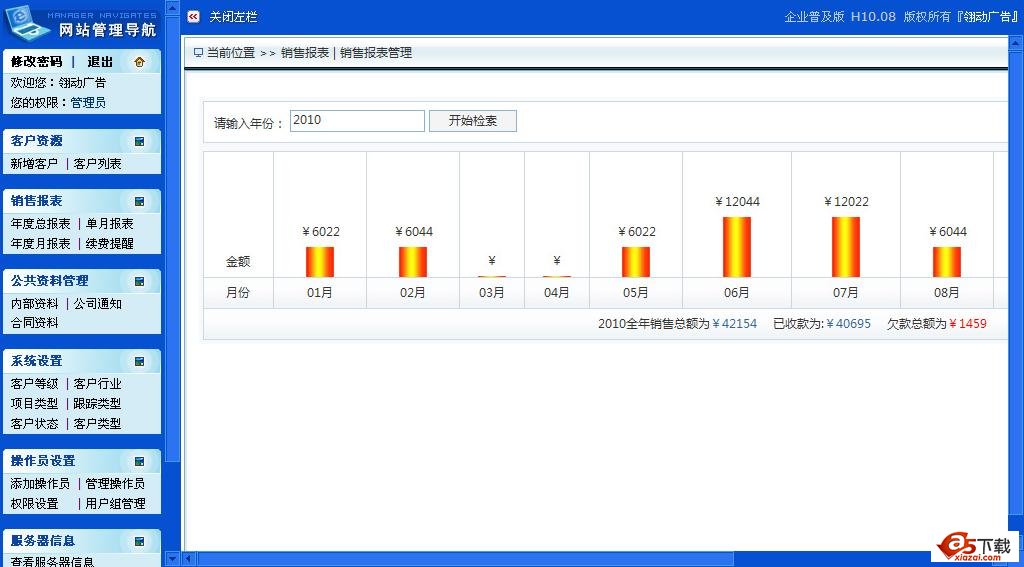 翎动客户管理系统CRM功能分为客户资源 销售报表 公共资料管理 系统设置 操作员设置等几大模块 密码为 admin admin