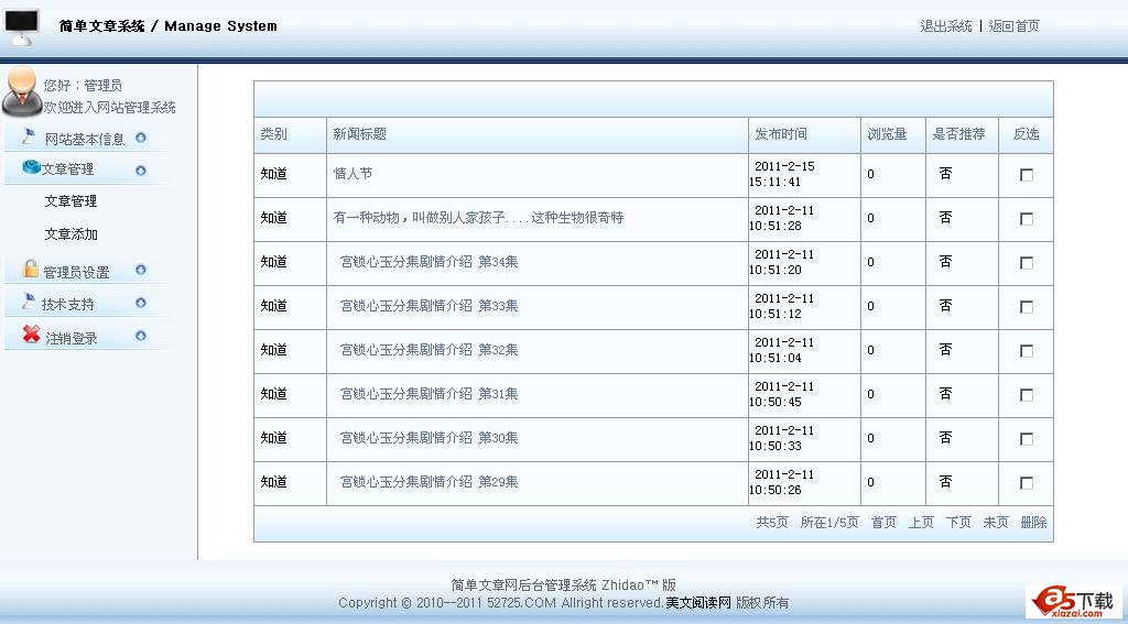 1.最简单的文章系统:来访查询 文章管理 文章添加 管理员维护 2.后台qq919026921/login.asp 用户名和密码都是admin