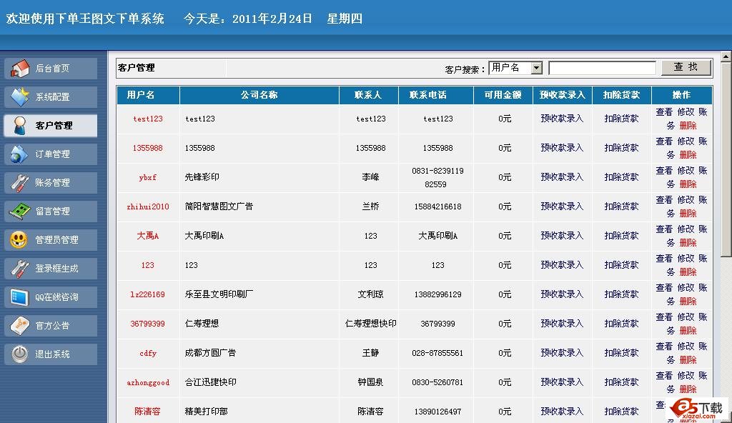 下单王系列产品应用先进的网络传输方式,是针对印前、印刷应用上的又一伟大创举!集在线喷绘系统、数码快印系统、在线印刷系统、在线输出系统、名片印刷下单系统、广告制作传输系统等六大在线下单系统于一体,每个下单系统的选项和参数都可以自由修改、显示与否,同时还拥有会员管理、财务管理、订单管理、在线留言、发货管理、公告、QQ在线客服、计算器、配色表等功能。系统基于普及的宽带网络传输文件,足不出户就可获得客户传输文件及订单数据,是广告、印刷等行业的好帮手。