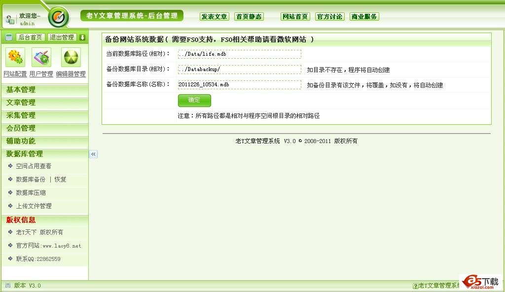 后台管理地址:admin/admin_login.asp 后台管理账号和密码都是 admin