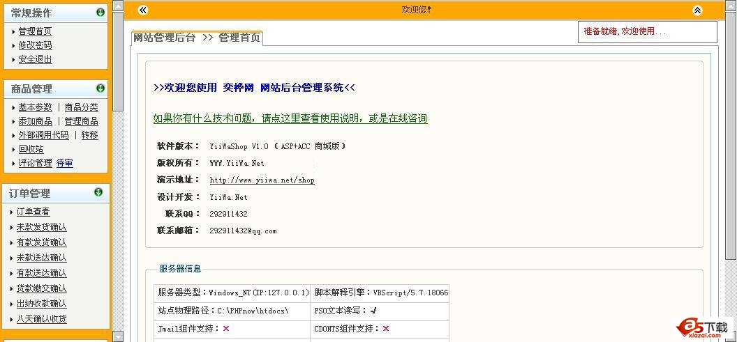 包括:新闻分类、发布、修改和采集,会员注册和资料修改,会员前台和管理后台订单处理,积分兑换礼品,后台商品分类、发布、修改及商场参数设置,网站信息设置,支付参数设置(可以设置使用多种支付平台,包括网银在线、支付宝、快钱、云网等),主页大幅广告、页面动态广告及合作伙伴的设置,友情链接(可以设定主页显示、LOGO显示等方式)等等。适合作为门户网站的商家使用,也可以提供给源码爱好者二次开发。只要改变一下主页的版式(自行修改),就可以变成不同行业使用的购物平台。