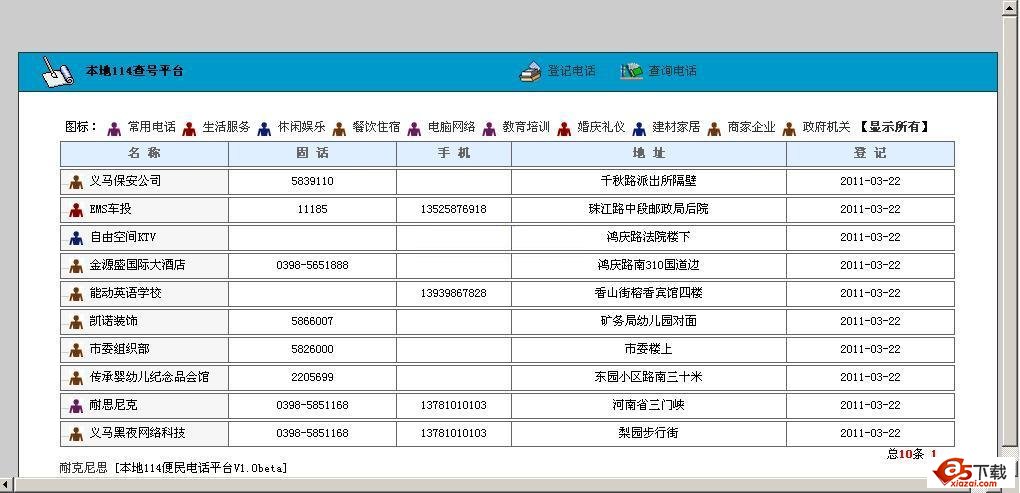 本地便民电话查询平台V1.0beta整体界面简洁,信息分类明确,表格条条有序,带查询功能,是非常适合地方信息港和地方信息网站,政府网站作为便民的一个小栏目!