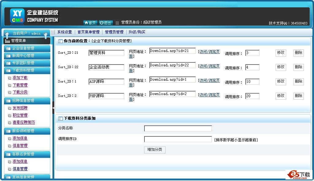 下载资料管理:网站下载资料管理,可添加,修改,删除等相关操作