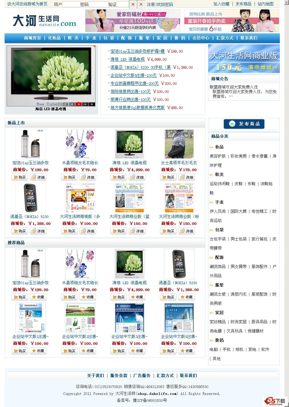大河在线商城系统为多用户商品销售系统。本程序适于建设企业网,商城网。