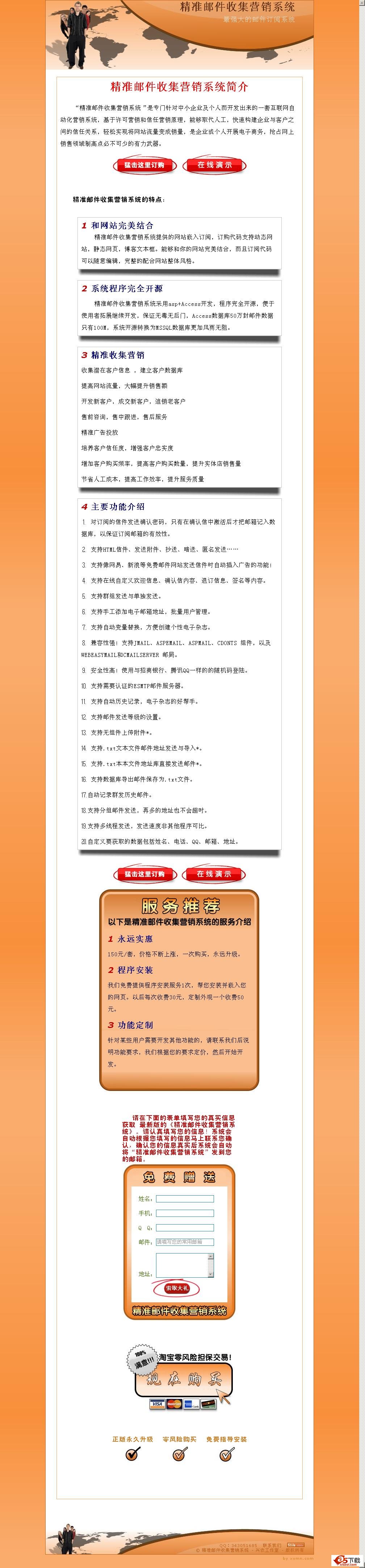 “精准邮件收集营销系统”是专门针对中小企业及个人而开发出来的一套互联网自动化营销系统,基于许可营销和信任营销原理,能够取代人工,快速构建企业与客户之间的信任关系,轻松实现将网站流量变成销量,是企业或个人开展电子商务,抢占网上销售领域制高点必不可少的有力武器。