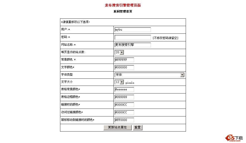 后台可以统一设置网站名称,字体属性,表格颜色及其他属性;