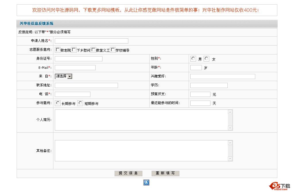 适合企业等的信息反馈,表单中动态字段,如下拉菜单,都可以在后台添加管理。