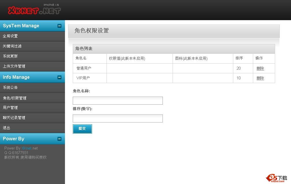 3.无论如何,即无论用途如何、是否经过修改或美化、修改程度如何,只要使用本系统的整体或任何部分,未经书面许可,页面中出现的任何有关ImChat或XKnet的标志和文字内容,都必须保留,而不能清除或修改