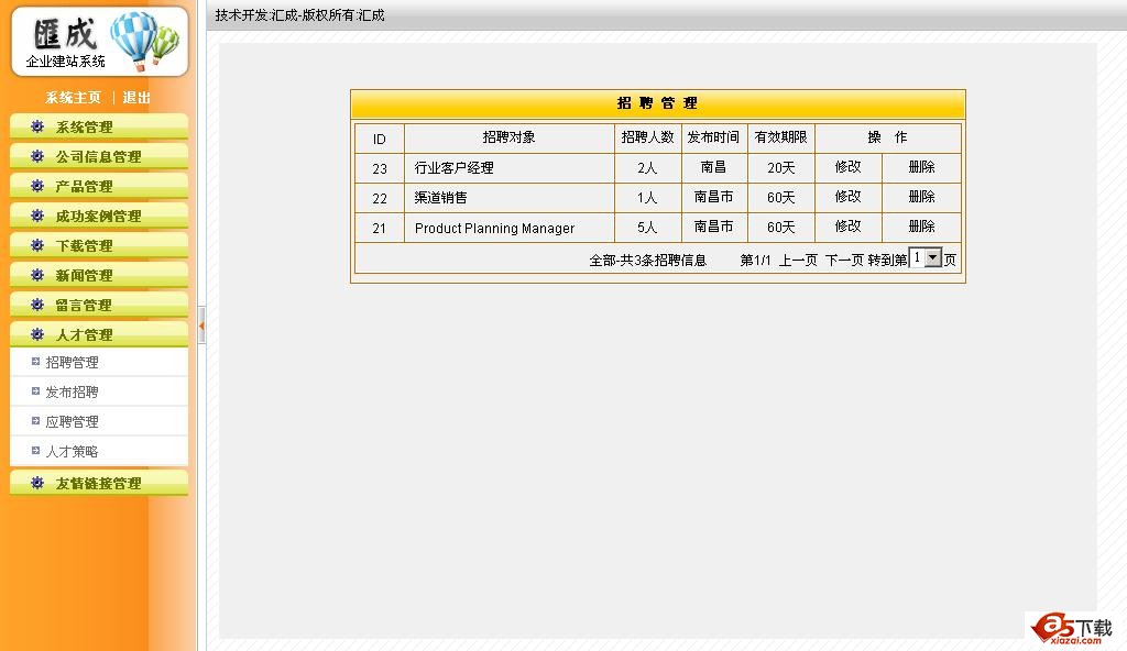 汇成企业网站管理系统为中小企业免费建立属于自己的网站;