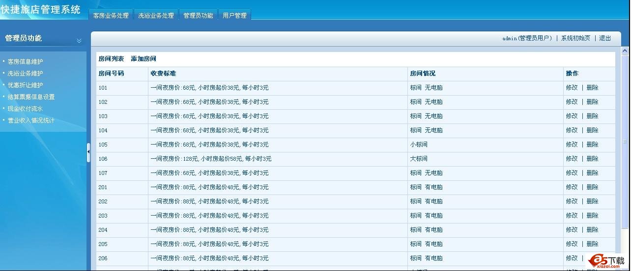 快捷旅店管理系统功能