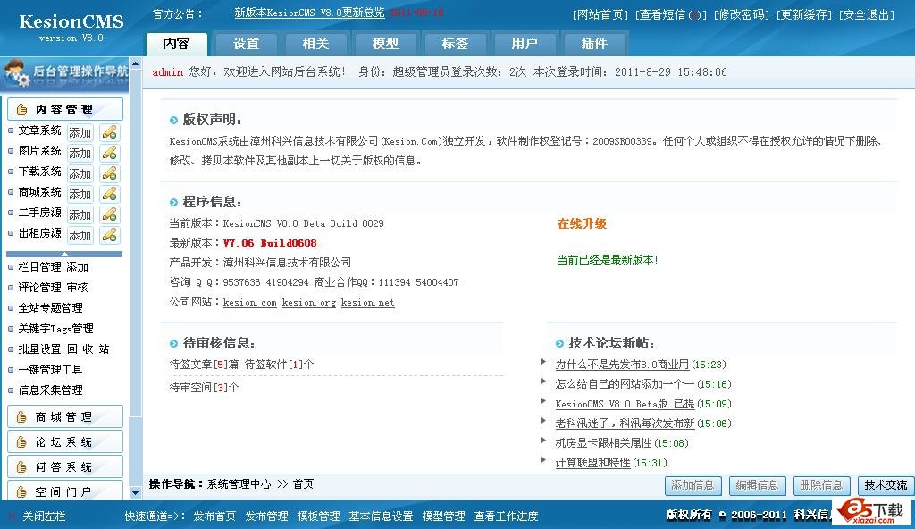 KesionEshop 内置KesionCMS基础版本的的有功能,包括文章,图片,下载,商城,团购,问答,论坛,微博,空间等十几个主系统。KesionEshop V9.02在之前版本的基础中增加多个功能模块,如: