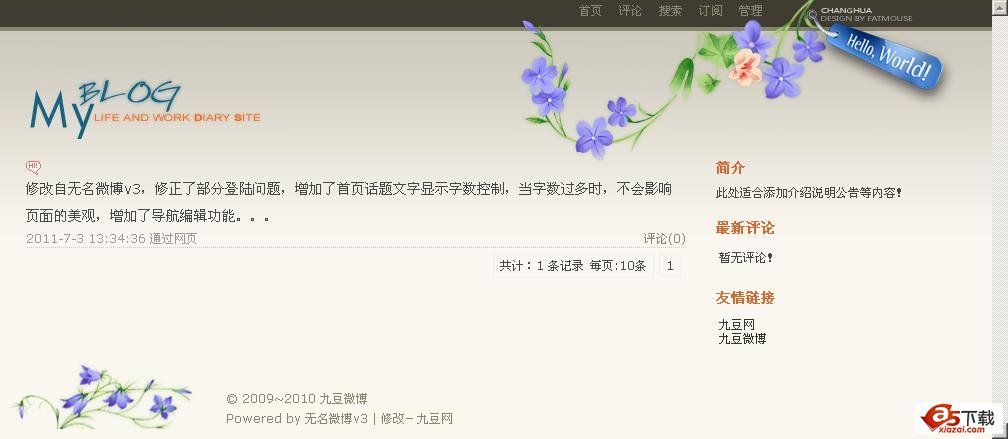 修改自无名微博v3,修正了部分登陆问题,增加了首页话题文字显示字数控制,当字数过多时,不会影响页面的美观,增加了导航编辑功能。。。 请先修改class/global.asp里的内容