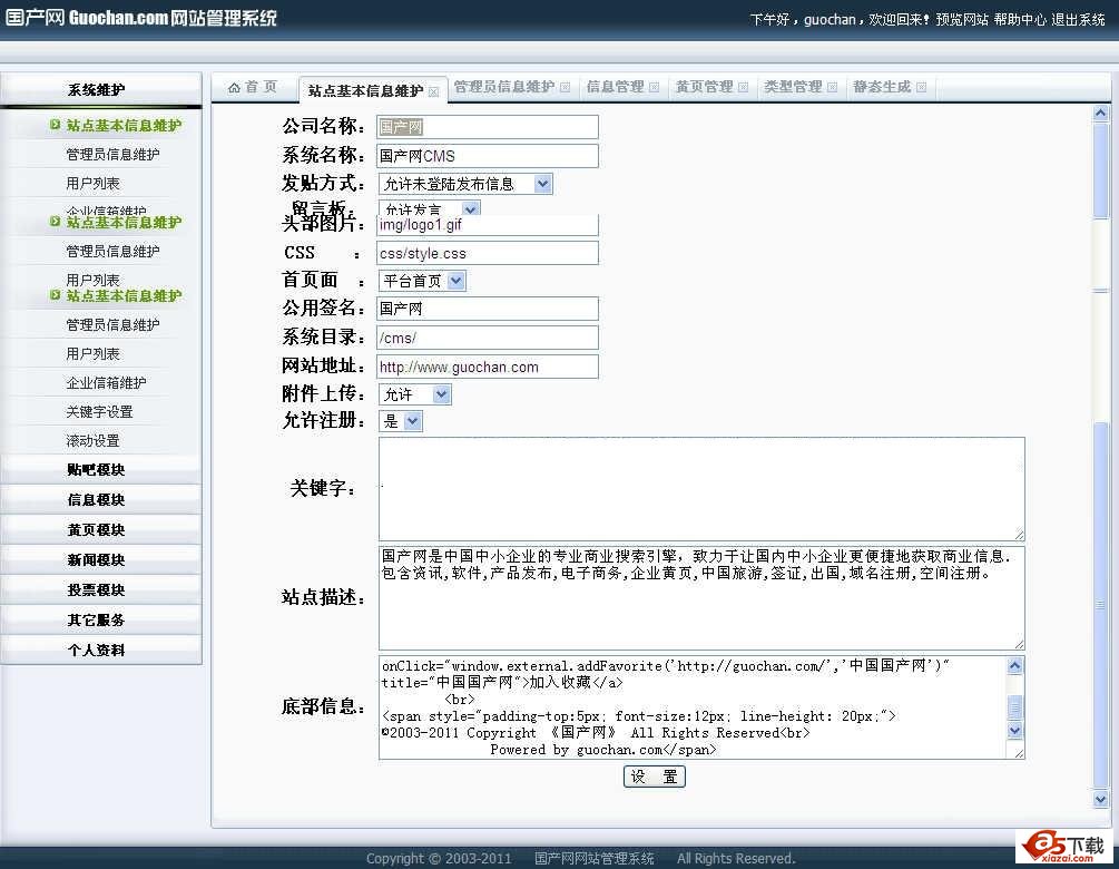 《国产网自动建站系统》与传统CMS不同,即系统自身即由新闻、论坛、信息发布、黄页、调查、相册等独立模板组成,相互独立又完美合为一体。