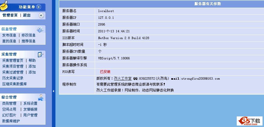 综合管理: 类别管理 用户管理 系统设置 数据库维护 空间占用 幻灯图片 友情链接