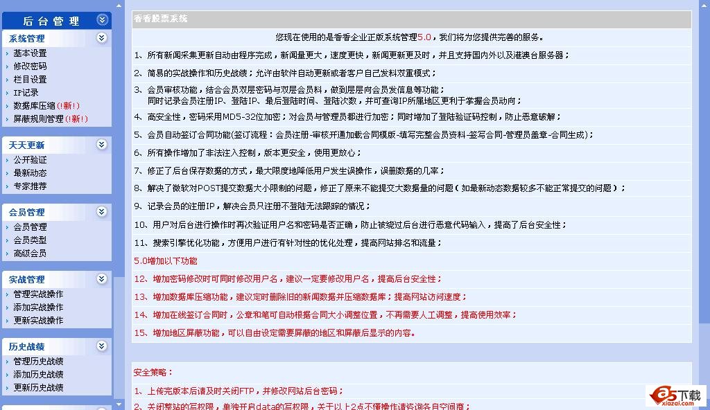 香香企业文章管理系统是全站采用主流DIV+CSS框架布局,功能强大,操作人性化,有五种不同模式,可以适用于广泛的新闻发布型网站,让不懂代码但又想建立自己网站的朋友,通过后台简单的配置,就能拥有一个个性化的自己的网站。技术支持联系QQ:1476457966