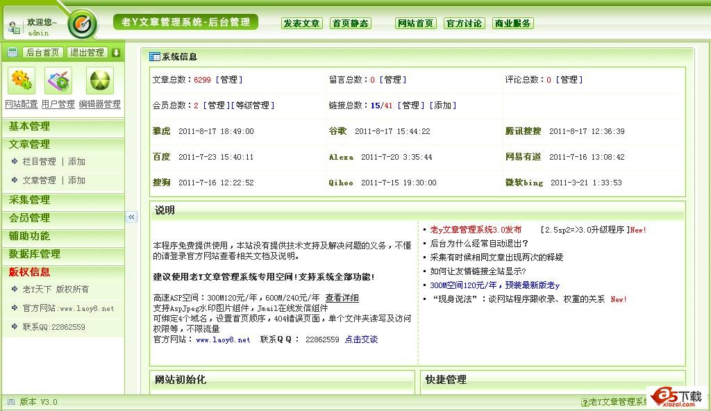 本程序是我花五百元找人做的,自带上千篇文章,后台带采集系统,全部伪原创,现在免费提供给大家,无任何后门,可安全使用,希望大家保留一个友情链接,谢谢