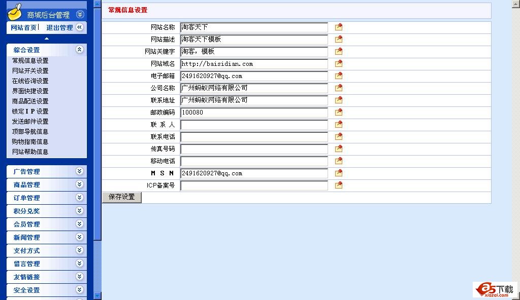9.后台“会员管理”中可查看会员登陆IP、会员详细资料,可在线给会员发送普通电子邮件、实时QQ交谈。