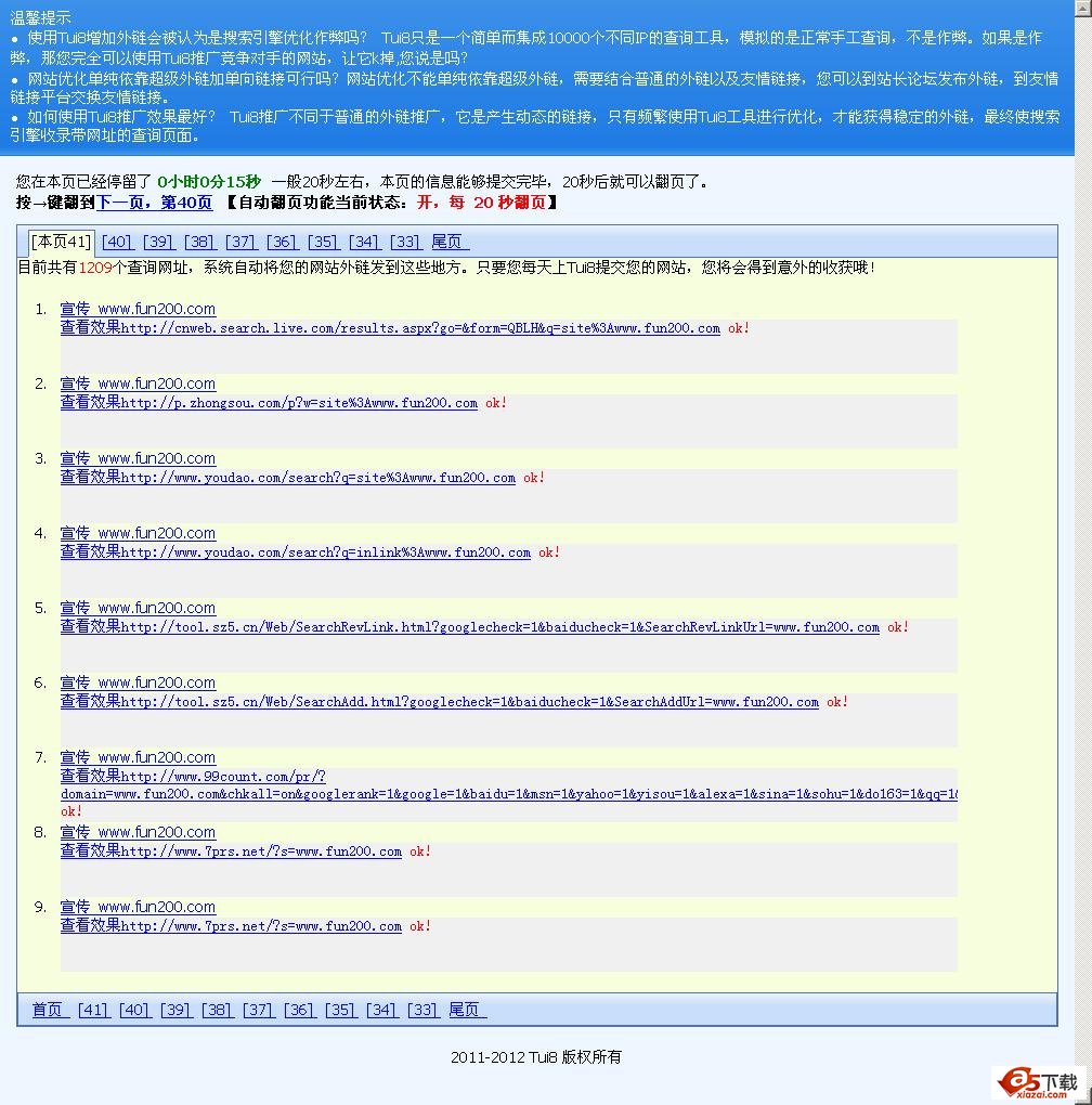 Tui8站长推广助手优化版优化了个别站点不能完美推广BUG,更加能为网站提供高质量的外链作用!